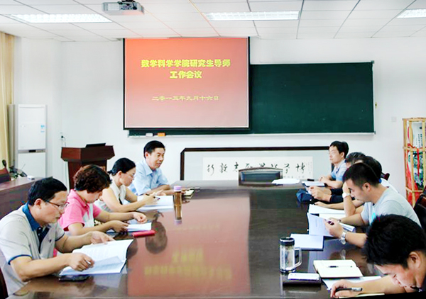2015年9月16日下午数学科学学院在综合楼913举行了研究生导师工作会议。学院党委书记孙忠民、院长助理卢涛、全体研究生导师以及研究生秘书王金玲参加了本次会议。会议由孙忠民主持。