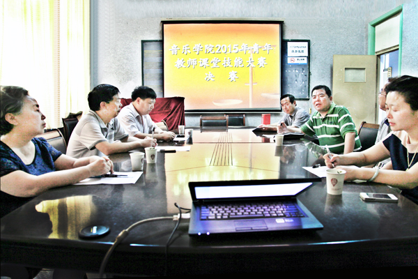 本年度音乐学院青年教师课堂大赛于2015年6月19日下午两点三十分在院会议室举行。为确保本次课堂竞赛的公平、公正特聘请了校督导组专家傅瑛教授、牛继清教授,高玉兰教授和教务处宋万干副处长担任评委工作,专家们根据《音乐学院青年教师课堂教学竞赛评分标准》对参加决赛六位教师的课堂教学情况进行现场打分。