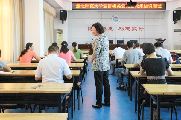 为深入推进“两学一做”学习教育,检验党群机关党员学习《党员权利保障条例》和新修订的《中国共产党廉洁自律准则》《中国共产党纪律处分条例》《中国共产党问责条例》等党规的学习效果,按照学校“两学一做”学习教育工作部署,8月28日下午,党群机关党总支在行政楼二楼第三会议室组织了党规知识测试活动。通过本次测试,进一步强化了党员对党规的认识和理解,在全体党员中进一步营造了遵章守纪、严于律己、廉洁奉公、担当作为的浓厚氛围,有助于进一步增强党员的权利和义务意识、廉洁和自律意识、纪律和规矩意识、责任和担当意识。
