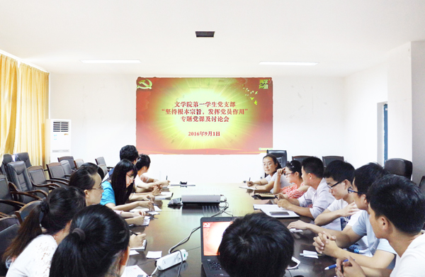 为进一步推进“两学一做”学习教育工作,2016年9月1日,根据学院党委工作部署,文学院第一学生党支部在学院515会议室举办了“坚持根本宗旨,发挥党员作用”的专题学习讨论活动。