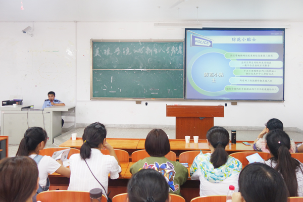 为了保障新生的人身安全和财产安全,9月5日下午,美术学院于文津楼B515举办了大学生安全知识讲座。参加本次讲座的有淮北市烈山区派出所警官苗欣、院党委副书记李曙光、团委书记胡天佼、辅导员赵峰以及2016级全体新生。