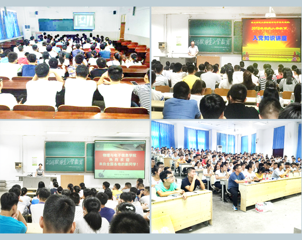 学院围绕学生手册学习、适应性教育、心理健康、女大学生生活指导、禁毒教育等方面制定了详细的新生入学教育计划。9月4日下午,学院在科讲103和科讲203教室同时举办2016级新生入学集中教育活动。李素文从学院的学科建设、师资力量、人才培养等方面为学生介绍了学院的整体情况,田向阳做党基础知识介绍,尹新国介绍学籍管理规定并做安全教育;副院长陈得宝就实践教学及学生科技创新与竞赛做介绍,院团委书记张东杰开展大学生行为规范教育及校园文化生活指导。各系系主任都开展系情介绍。集中教育之后,各班级辅导员和学生兼职辅导员带领新生参观校园,熟悉校园环境。