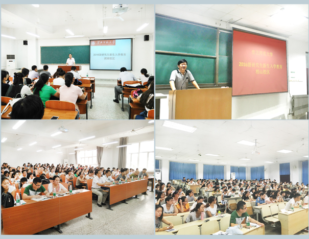 9月5日,我校分别在滨湖校区文津楼B115和相山校区科讲103举行了2016级研究生新生入学教育。研究生处处长邓道贵到会并讲话,研究生处相关工作人员、各学院研究生工作秘书和2016级全体研究生新生参加了会议。会议由研究生处副处长徐建龙主持。